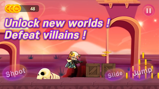 Just run, shoot, jump and slide in a thrilling battle with villains.