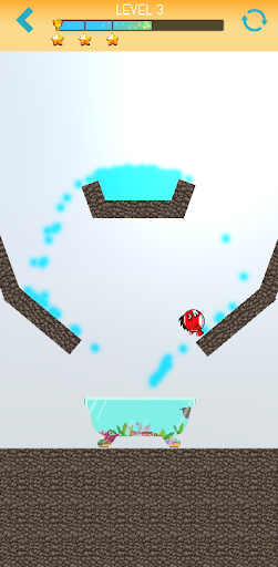 The basic mechanics of the game is to move the fish by spraying water from above. The squeezing action acts on the fish and pushes it towards the path of the tub, making it progress. Also, the game has different floors. Floors such as ramps make the movement of fish easier, while obstacles and obstacle floors require more strategy. Guide the fish into the tub using the correct spin timing and wise use of the grounds.