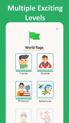 📊 Numerous levels. Start learning geography as a Trainee and become a Legend in guessing national flags and world capitals