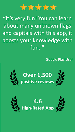 World Flags and Capitals Quiz is one of the most fun geography games for all who want to learn the national flags and capitals of countries all over the world🌐 It is free, and it will also suit you if you were looking for offline quiz games.
