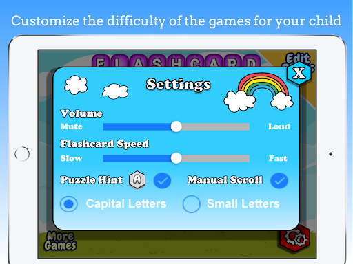 (7) Option to turn off the letter guide in Puzzle mode for older children who needs to memorise the words