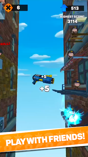 The free casual flip game, Flip blast, contains a variety of weapons and guns, gore, and violence used in comedic simulated combat situations. Viewer discretion is advised. Players should consult the free game's age rating before playing Flip Blast - Top 3D Free Shooting Game.