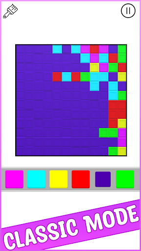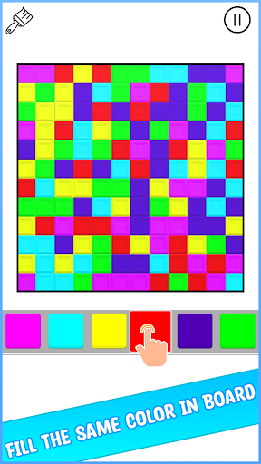 Fun addictive brain puzzle game that challenges your ability to fill the entire cell board with just one color after a fixed number of moves.