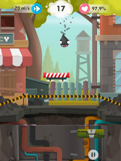 You do not need to jump, do not fly, do not climb anywhere, but fall! Yes, yes, fall. Jump from the springboard into the unknown and fly as far as you can. But not everything is so easy, on your way there will be many obstacles that will prevent your record. And do not forget to keep track of your volume and replenish it in time, otherwise you will disappear. Collect bonuses and activate new drops, because there are a lot of them in the game. And each drop has its own characteristics. Play for each of them!