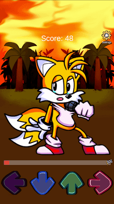 Tails Mod Test FNF has simple and understandable control - press the arrows on the screen of your device and Tails will move and make a sound. To make you even more fun, after each press, you will be charged points and music will sound. By the way, in FNF Mods Tails you can turn off the music and listen to the voice of only the protagonist.