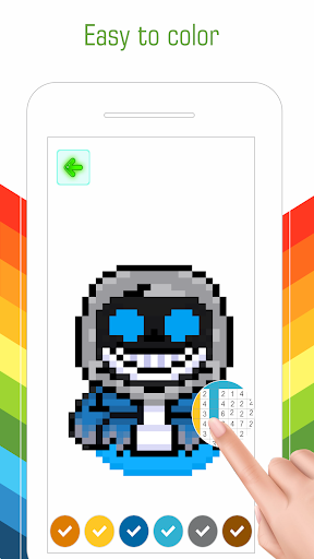 The FNF Sans Undertale Pixel Art Color By Number Art Coloring Games application will take you to the colorful fantasy world of the characters of FNF Sans. This FNF Pixel Art Color By Number Art Coloring Games application is designed to color by number, Pixel Art is a free pixel game that is fun in your spare time.
