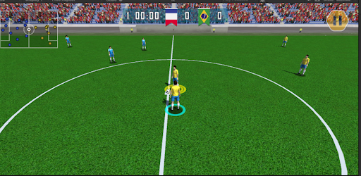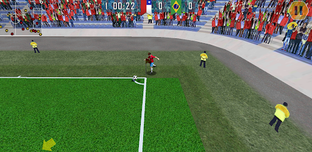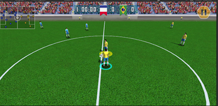 A soccer game for international teams with simple controls: pass the ball, run and shoot to score a goal