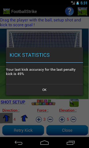 You will require goal expert advice and kick statistics to score a goal successfully. Enjoy Football Strike !!!.