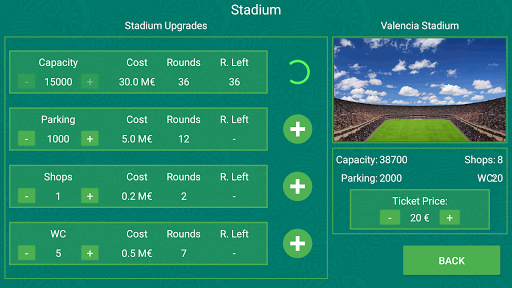 - Manage the stadium, determining the price of the tickets and making improvements.