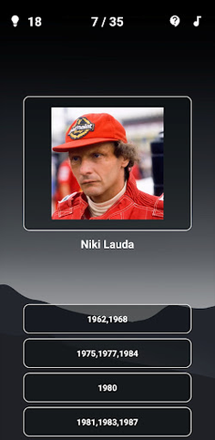This Formula 1: Guess F1 Driver app is made for entertainment and to increase knowledge about F1 Driver, Grand Prix Circuits and all F1 Champions, titles numbers and years they won it. Every time you pass the level, you will get hints. If you can't recognize a picture / logo, you can use hints to get clues even answer to the question.