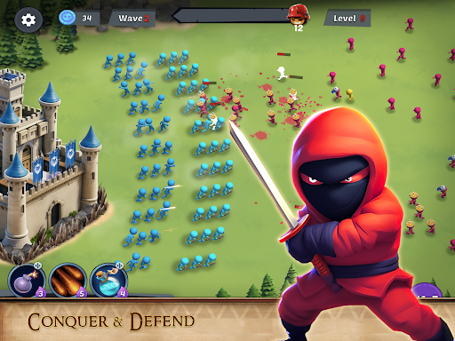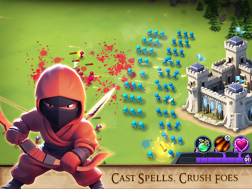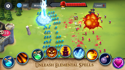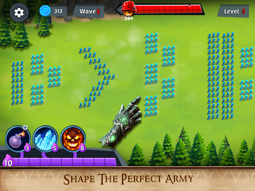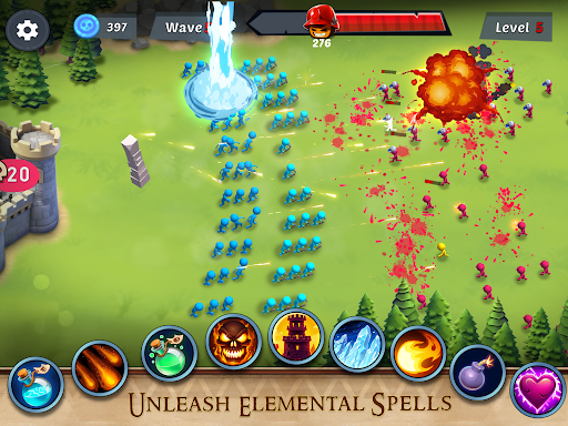 Discover a variety of magic abilities that can help you conquer your enemies' waves. You can try out the healing ability to revive your troops, the fireball that can be directed to kill or weaken a group of enemies, the icebergs that appear in the middle of the battlefield, the mines you can set to kill enemies when they step on them, and other exciting abilities. 🪄💥❄️🌋💣