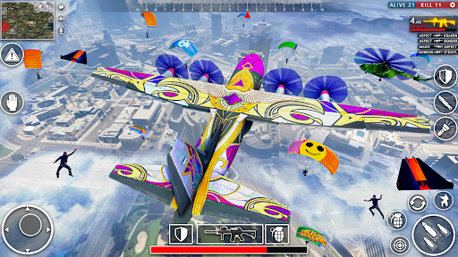 Enter the arena in the FPS Battle royale game and fight in squad battleground survival to be the last one standing against militant hunters. In this fast-paced, action-packed game fight like a sniper to kill every sniper terrorist. Be an FPS Shooter and use powerful weapons in this 3D action game to destroy the enemy's territory as in other shooting gun games. In short, as a trained soldier you'll need to use all of your skills to survive with tanks and army weapons and guns in your use. In this FPS Battleground shooting game drop onto a massive map with up to 10 other players of this battle shooting war game, and scavenge for weapons and gear to take down your opponents in a battle between your squad and enemies. Battle with each other in this war and the last player or team standing wins the game with powerful weapons like guns, pistols, bombs, etc.