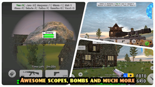 There are plenty of weapons like Rifle, ShotGun, Sub machine gun, Sniper rifle, Gun, Pistol and bomb.