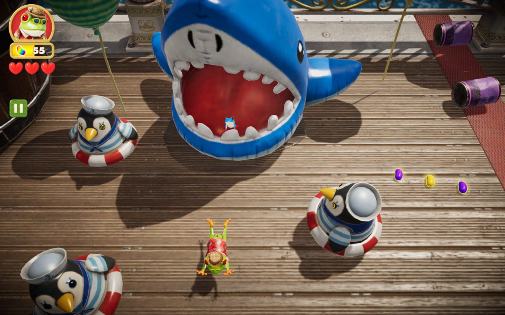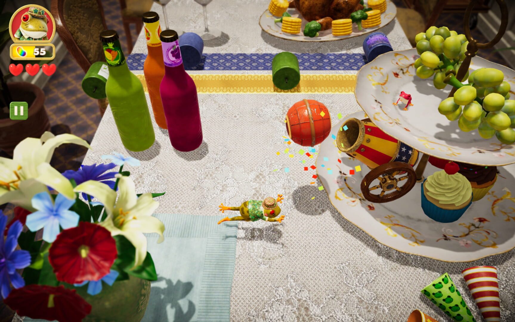 With over 400 furniture and other items, no two stages are the same, ensuring that the game never gets boring. Frogger can be customized with over 20 different costumes! Missions are also included to provide further replay value for the stages. Besides, grab your friends and play together in co-op mode.