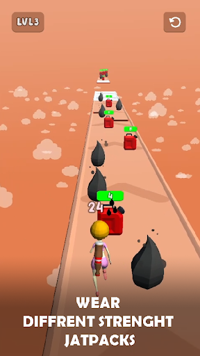 It has lots of obstacles, you should help her to avoid these obstacles. She does not want to collide anything it cause a lot of pain and fuel lose. She needs every last drop of fuels because in the she should go to top of the score tower with jatpack engine which is runs with fuels.