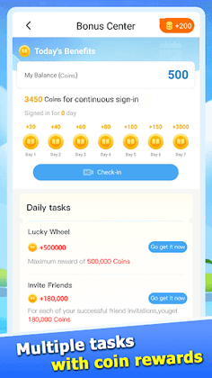 Social Interaction: Invite your friends to join and get coins while competing with them.