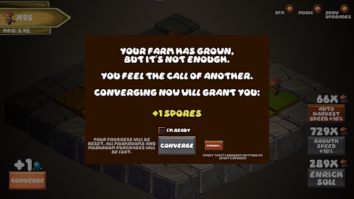 You feel the need to farm mushrooms. But there is a voice calling to you. Something from deep under the farm. You must grow mushrooms. Relax and watch them grow.