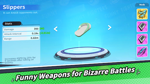 Experience the ultimate form of gaming as regular objects transform into wacky weapons. Make brawls a blast by collecting Weapon Mods to add special effects. Legendary Mods with powerful traits are also available. Get themed Weapon Skins to make your weapons stand out uniquely.