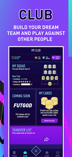 The most feature packed FUT 21 app: - Play unlimited FUT 21 Tournaments and use the players you pack in matches - Trade FUT 21 players on the market in real time with people all over the world- Open free and unlimited FUT 21 packs featuring FUT 21 icons and custom cards!