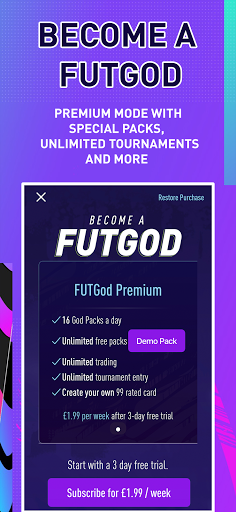 FUTGod is always free, while you could also upgrade to Premium account, “Become a FUTGod”, to enjoy full access to better packs and unlimited use of features.