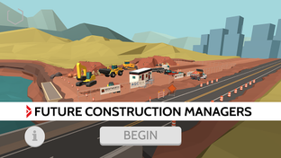 In Future Construction Managers, players explore a virtual construction site where they have the opportunity to interact with construction managers of varying expertise including - estimators, schedulers, project managers, and superintendents.