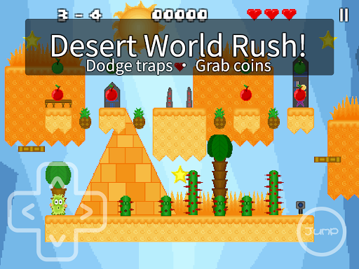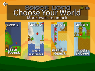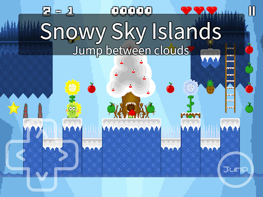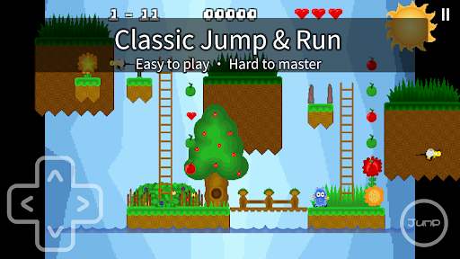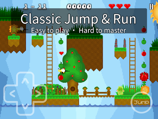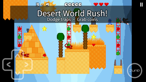 This game contains 48 well designed levels in 4 different themes: forest, frost land, desert, and jungle. There are also various enemies and obstacles, simple game play, and retro graphics and music/sound effects.