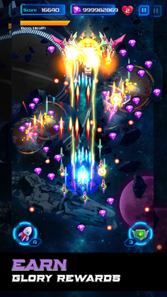 Galaxy Attack Alien Shooter: Strike Force promises an unprecedented aerial combat experience for Space war game. Upgrade your battleship prior to engaging in the plane shooting games. Use collected gems between levels to enhance your strength, making it easier to destroy enemies.