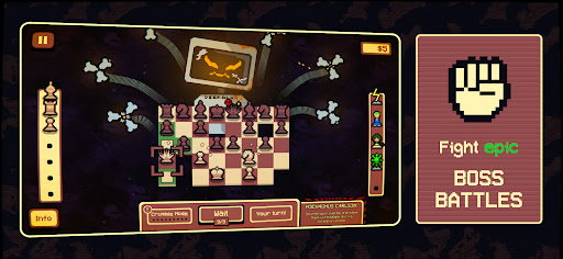 Master tactical twists, invest your winnings, and discover rule-bending Gambits plus wild tile and piece combinations. Face off against challenging bosses and get lost in all the ways you can break traditional chess!