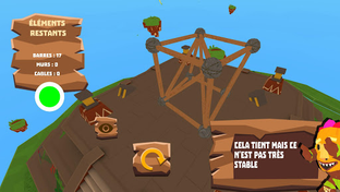 Dans un univers en trois dimensions tout en tenant compte de la physique des matériaux, l’utilisateur doit réussir à stabiliser une construction réalisée sur mesure.