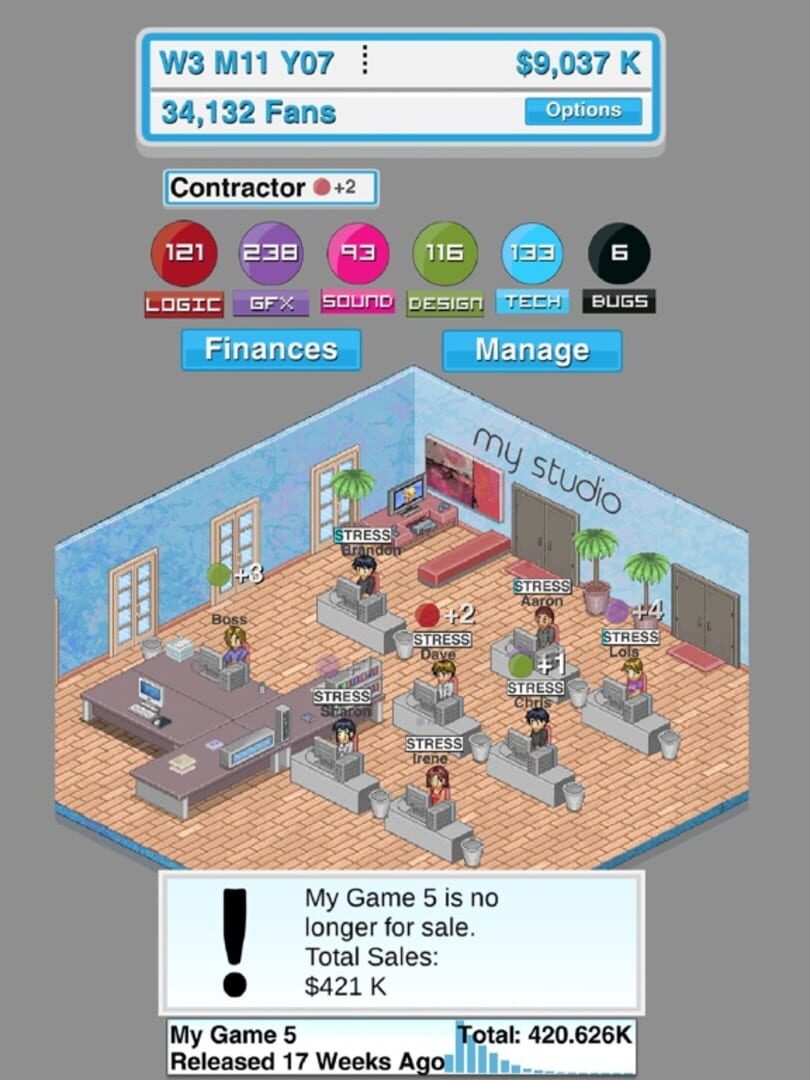 Maximize the potential of your team of developers to create superior quality games for your fans. Discover and research diverse game genres and platform types to expand and improve your company's products. Invite professional contractors to your team and benefit from their expertise to guarantee your games’ success.