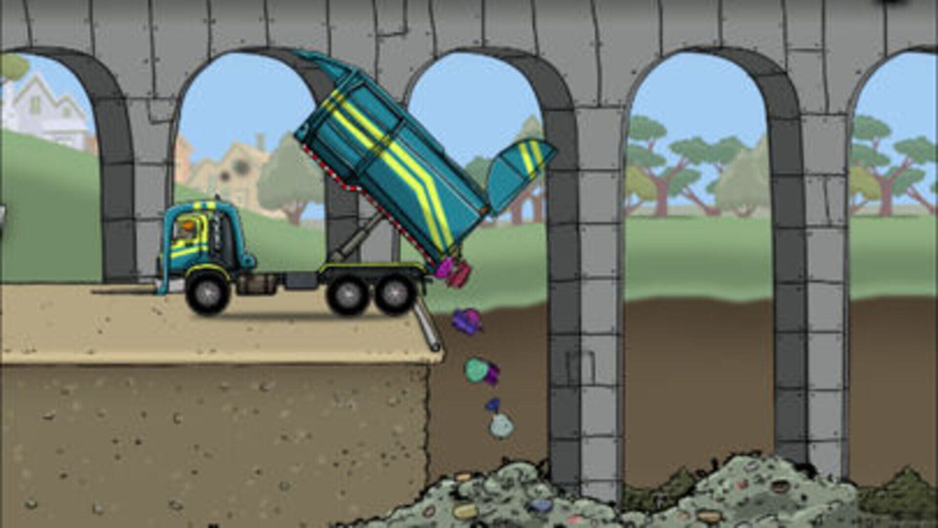 Become a garbage truck driver and pick up dumpsters in this interactive app. Great for curious kids who love trucks.