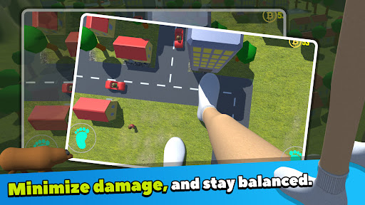 As Big Foot, you must navigate through the countryside, towns, cities, and lakes while trying to minimize damage to the surroundings. The challenge lies in maintaining balance and avoiding causing too much destruction with each step.