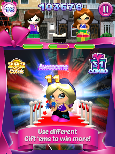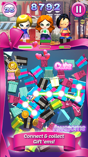 The Gift‘ems puzzle app is an exciting complement to the new Jakks Pacific Gift‘ems toy line, available at top retailers. Get ready to play the fast-paced Match 3+ style puzzle game where you need to connect three or more matching Gift‘ems boxes. As you connect more Gift‘ems boxes, you will earn more points. The objective is to connect as many Gift‘ems boxes as possible to obtain the highest score. Each Gift‘ems character has its unique abilities that can help to increase your score. Upgrade their power and use their skills to help you advance in the game! Use the coins you earn to collect all the Gift‘ems dolls. With the Bonus Items, Premium Characters, and Daily Challenges, you can amass more points quickly. The game has beautiful 3D dolls and backgrounds customized according to the city you choose. Share your scores and images on Facebook, Twitter, Email, or Text. You can also connect with your Game Center friends and see who has the highest weekly score.
