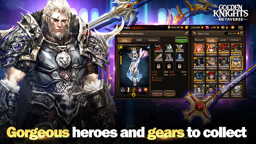 Collect and strategize with over 270 heroes and gear pieces in GoldenKnights: Metaverse, the easy and fun RPG for everyone. PvP, boss battles, and guild wars await.