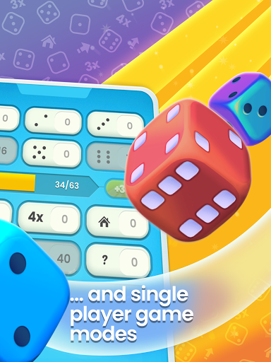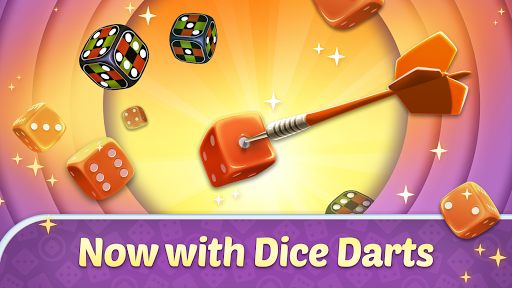 DICE DARTS. This fresh, exciting single-player mode can also be played without time pressure. Your goal is to make it from 501 points to 0 in ten turns. Scoring a category decreases that amount from your total score. Take advantage of score multipliers but remember, going below 0 points gets you back to 50 points. Get to zero with “darts” left to win big!