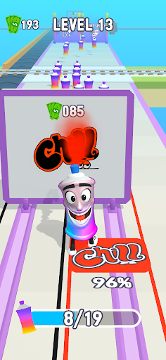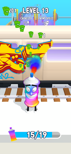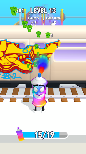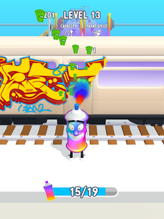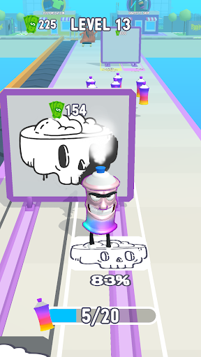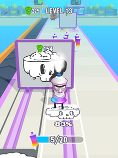 Pass through the upgrade gates to enhance your graffiti speed and expand your paint capacity! But beware, there are monsters and moving objects on the platform trying to steal your paint. Be quick and smart against them, do not let your graffiti art fall into their hands.