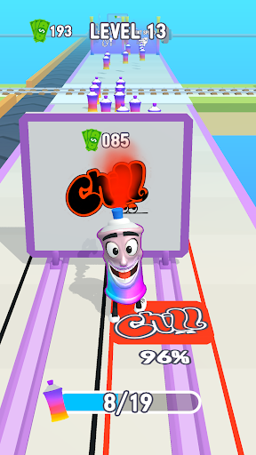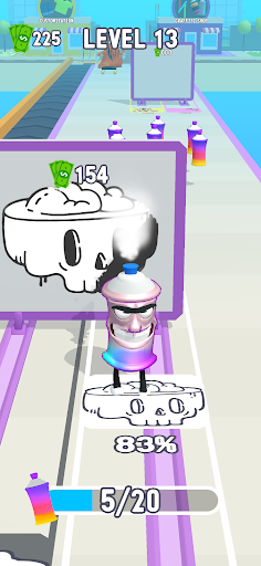 With your fun and vibrant character, a spray paint can, collect paints on the platform to fill the walls with colorful graffiti!