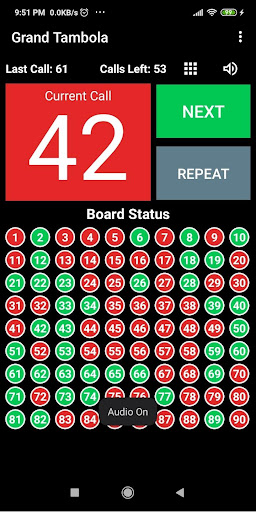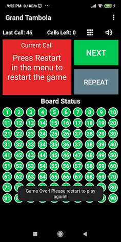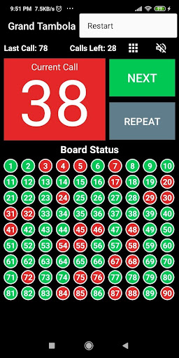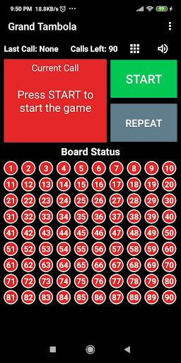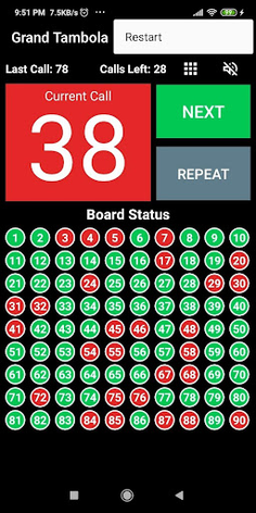 Note: This tambola app currently only generates/calls numbers and shows board status.