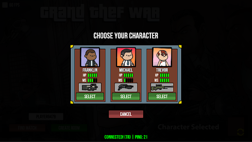There are three characters in the game, you choose one and join the game.