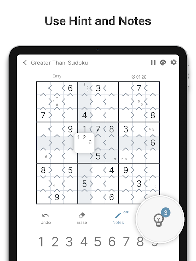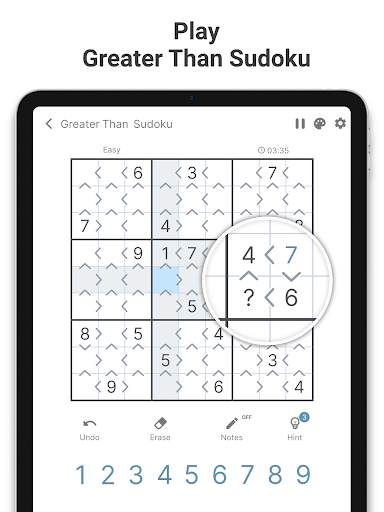 Download this number game and play sudoku puzzles. Greater Than Sudoku puzzle is available offline.