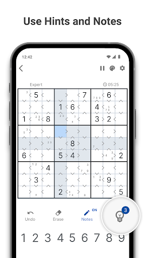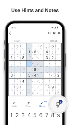 ✓ Turn on Notes ✍ to make notes as on paper. Each time you fill in a cell, notes are automatically updated!
