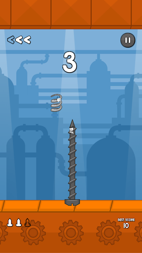 You're going to control the metal spring called Greg Spring, which is on a conveyor belt. You can't let yourself be carried away by it and you should be careful with the screws that come toward you. You can't touch the screws, the only alternative is to jump over them. Each screw you jump over successfully, a point is scored. So, try to score as many points as you can!
