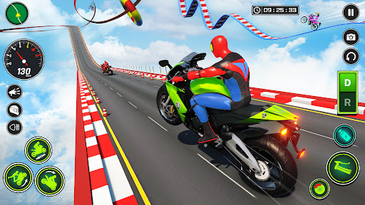 Enjoy & drive the most famous Motorcycles through challenging roads in superhero motorcycle- offline games. In this mega ramp stunt bike games you have 30+ challenging levels of gt superhero motorcycle offline games. So, start your day with a new impossible journey of mega ramp motorcycle games stunts. Become a best bike racer in this superhero motorcycle games. In ramp racing games ultimate races you will race your gt bikes with speed racing to go with high sky jumping stunts on impossible ramps. Become a crazy bike driver and perform all the challenging ramp stunts in this superhero motorcycle games to ensure that you are the best bike stunt master. Unlock all the rest of superhero bikes and get ready for extreme racing on impossible tracks in real ramps- bike games.