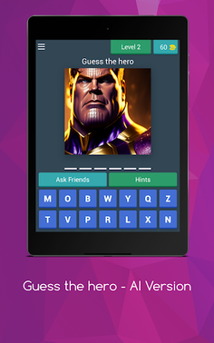 This beautiful game is create for humor and for all categories of childrens to guess all heroes from the AI World.Is a very simple game for fun and have a lot of beautiful pictures only for you.