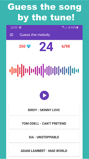 A game for those who are looking for a quiz in which you need to guess the name of the song. This quiz is in the style of "4 words 1 song". If you want to test your knowledge of pop music - this quiz guess the melody from the picture - you will really like it, because here you can guess the melodies of old songs and new tracks. Install this song quiz and enjoy popular hits solving them!