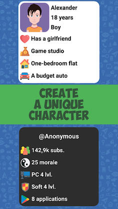 - This is a game in which several different game themes are combined, such as "Hacking", "Creating games", "Programming" and, of course, "Life simulation".