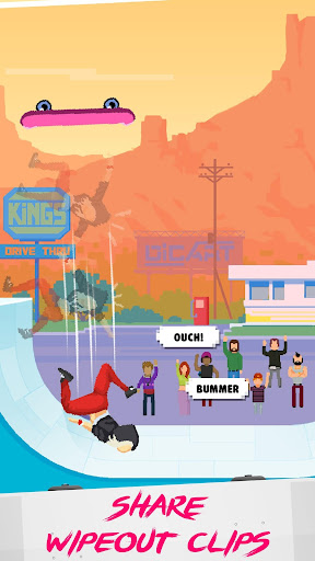 What's more, Halfpipe Hero includes wipeout clips, animated GIFs that players can share with friends on social media. The retro style is a nod to classic 80s game hits, featuring pixel graphics that are pleasing to the eye. You can also groove to your beats in the game, with killer tracks that guarantee an epic game experience.