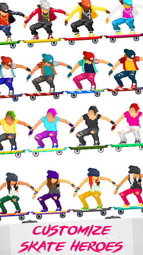 Explore diverse locations, from exotic beaches to tunnels beneath the city in wicked challenges as you grind your way to victory. The game includes an option to collect new heroes and skins, enhancing the fun and excitement of the game.