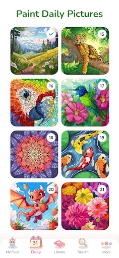 The fourth reason to download Happy Color is the diversity and inclusivity of its art. The adult coloring book boasts contributions from artists worldwide and offers a wide range of pictures from various cultures. Finally, Happy Color is an excellent form of art therapy to relax and unwind. The calming effect of our games will make your worries melt away, leaving you refreshed and rejuvenated.