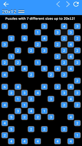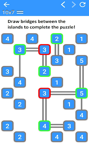 Challenge your brain with puzzles of 7 different sizes, which can have 2, 3, or 4 bridges between two islands.